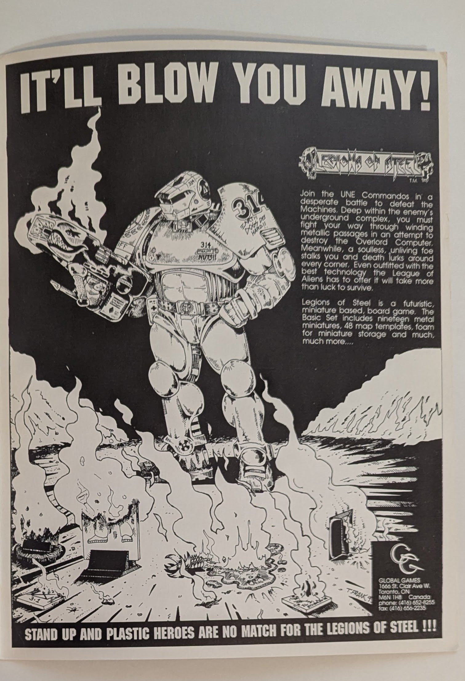 An extremely cool gaming magazine is offered to you here, the cherry on top being the full page rear cover ad for a little new game called Magic the Gathering. I got chills handling this. Imagine..a bunch of swinger freaks in Washington making the world's first trading card game, not knowing we'd have like fucking...$2 million cards being bought by Post Malone 30 years later. Amazing ads, cool features on other new games like Blood Bowl, this is one of the best things I've seen in a hot minute. Shout out "Head on a Pike" from Jersey City, NJ. This one's for you.