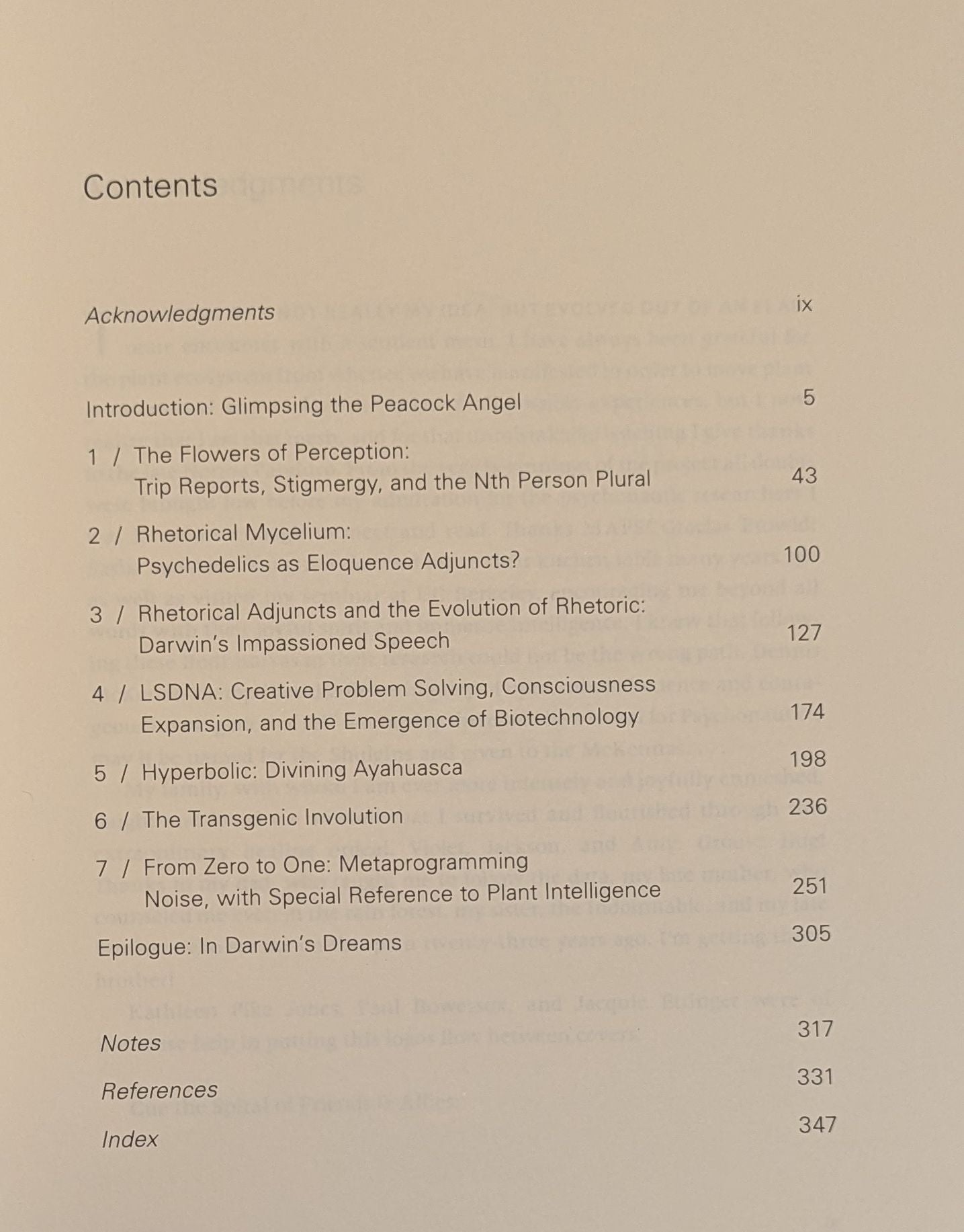 "Are humans unwitting partners in evolution with psychedelic plants? Darwin's Pharmacy shows they are by weaving the evolutionary theory of sexual selection and the study of rhetoric together with the science and literature of psychedelic drugs. Long suppressed as components of the human tool kit, psychedelic plants can be usefully modeled as "eloquence adjuncts" that intensify a crucial component of sexual selection in humans: discourse.