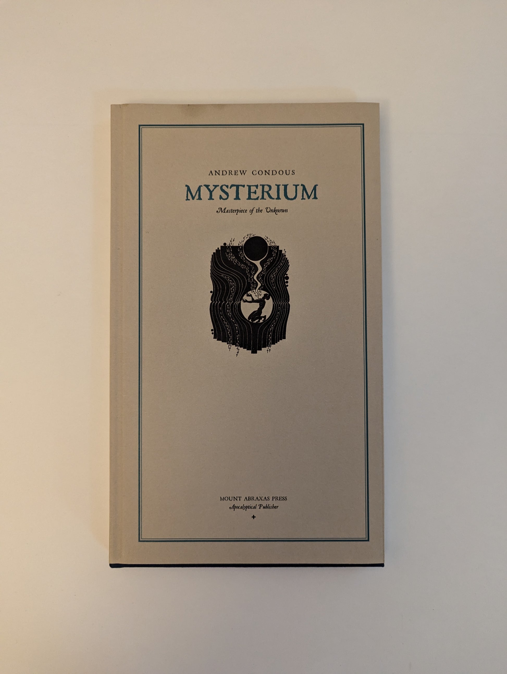 Mount Abraxas specializes in hyper small run works of extremely high quality. In Condous' "Mysterium" we travel through a series of strange fictional works, each threading occultism, cosmic horror,and folk horror imagery to produce a memorable and lovely collection. Highly recommended, and with only 63 copies out there, I recommend striking while the iron is hot. Beautiful layout, dust jacket,paper stock...a true Talismanic Text.