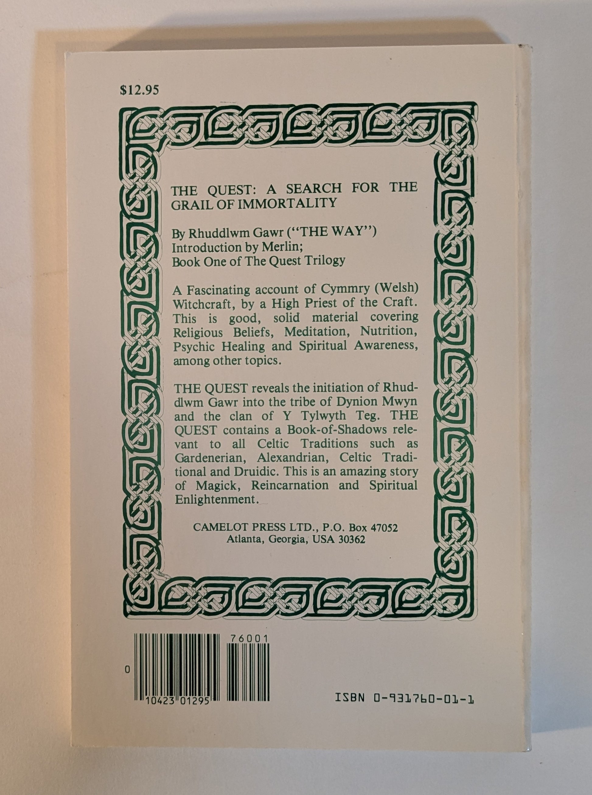 "The Question reveals the initiation of Rhuddlwm Gawr into the tribe of Dynion Mwy and the clan of Y Tylwyth Teg. The Quest contains a Book-of-Shadows relevant to all Celtic Traditions such as Gardnerian, Alexandrian, Celtic Traditional, and Druidic."
