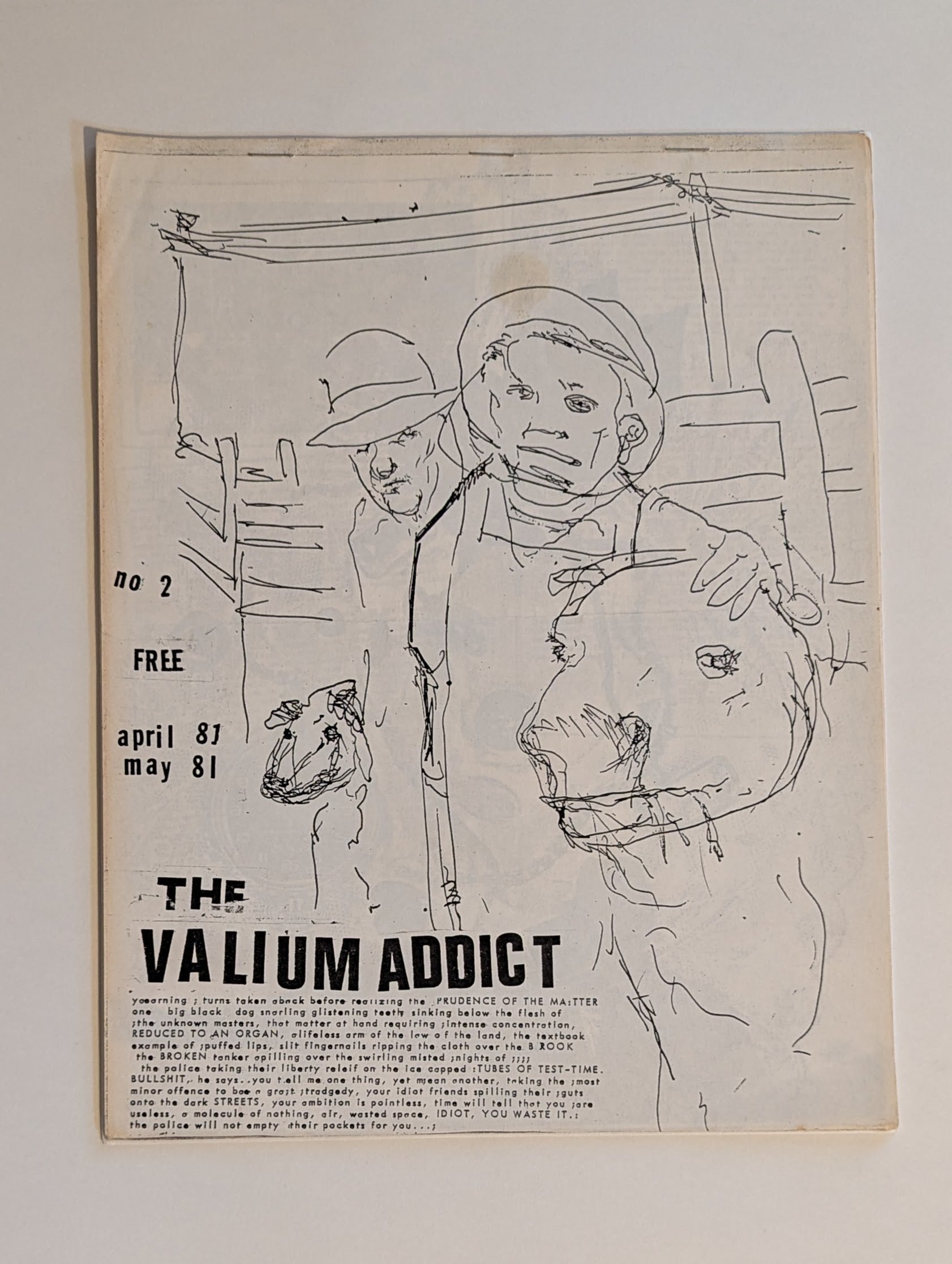 Richard Kern was a luminary of the NYC no-wave scene. First came "The Heroin Addict" from 1978-1981, then "The Valium Addict" from 1981-1983", which became "Dumb Fucker" by issues 5 and 6. Alarum is exceedingly proud to offer a rare second issue of the Valium Addict.