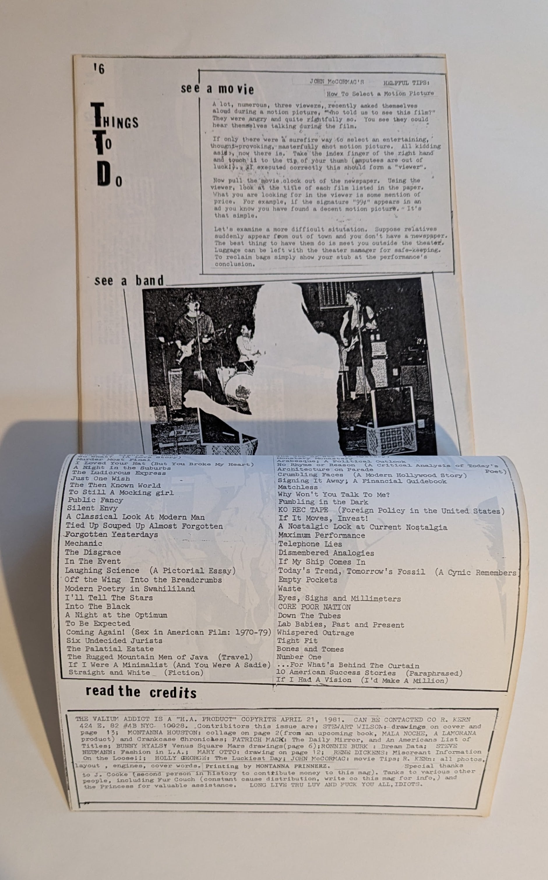 This second issue of The Valium Addict includes contributions by Stewart Wilson, Montanna Houston, Patrich Mack, Bunny Ryals, Ronnie Burn, Steve Neuman, Mary Otto, Rene Dickens, Holly George, and John McCormac. Masterfully laid out, well written, this issue provides ample evidence of what would come in Kern's career. Scarce and important.