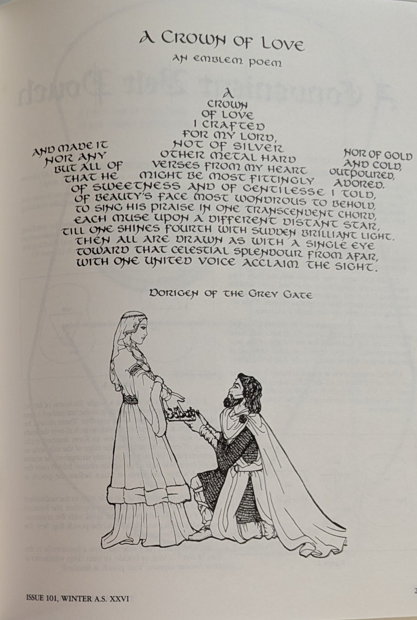 The Society for Creative Anachronism, CA. 1991. 48 pg. staple bound magazine in excellent condition.