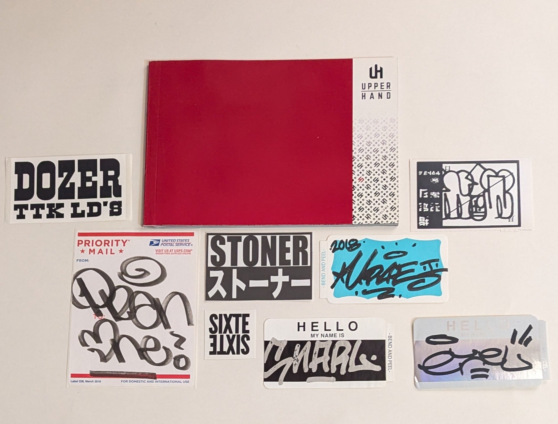 Upper Hand, USA. New. Includes a ton of stickers and slaps (see the pics)
